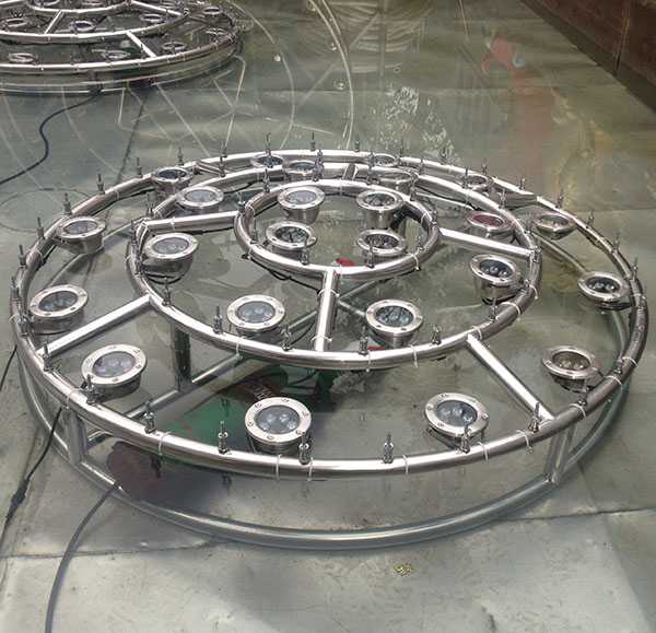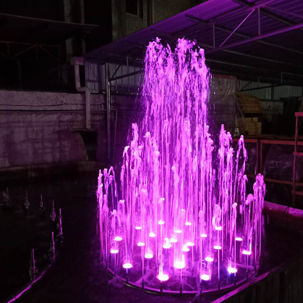 FS06 water fountain is popular design model, main is consist of direct fountain nozzle stainless steel RGB fountain lights, water pump. Design is round shape water fountain, installation very easy, fountain need small space to installate. Fountain water will be dancing according to music rhythm, led lights color change automatic. fuente de agua de la piscina.This design fountain simple and fresh, very suitable outdoor indoor swimming pool, garden, hotel lobby, Landscape decoration