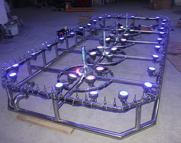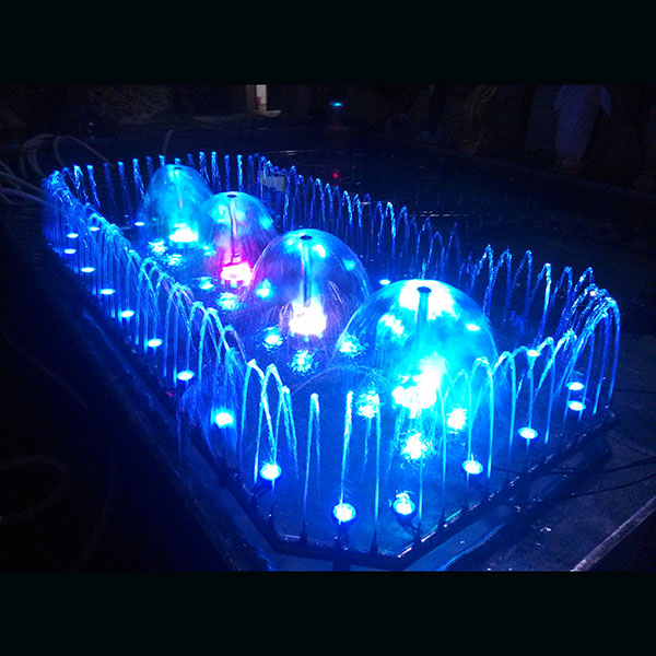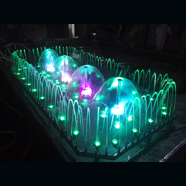 FS08 2 by 4m water fountain is regular customize fountain design, any size fountain can customize. Fountain main is consist of direct fountain nozzle, mushroon fountain nozzle,  stainless steel RGB fountain lights, water pump. Design is rectangle shape water fountain and look like a flower, installation very easy, fountain frame is can removeble, more easy for shipping. fountain need small space to installate. Fountain water will be dancing according to music rhythm, led lights color change automatic. fuente de agua de la piscina.
