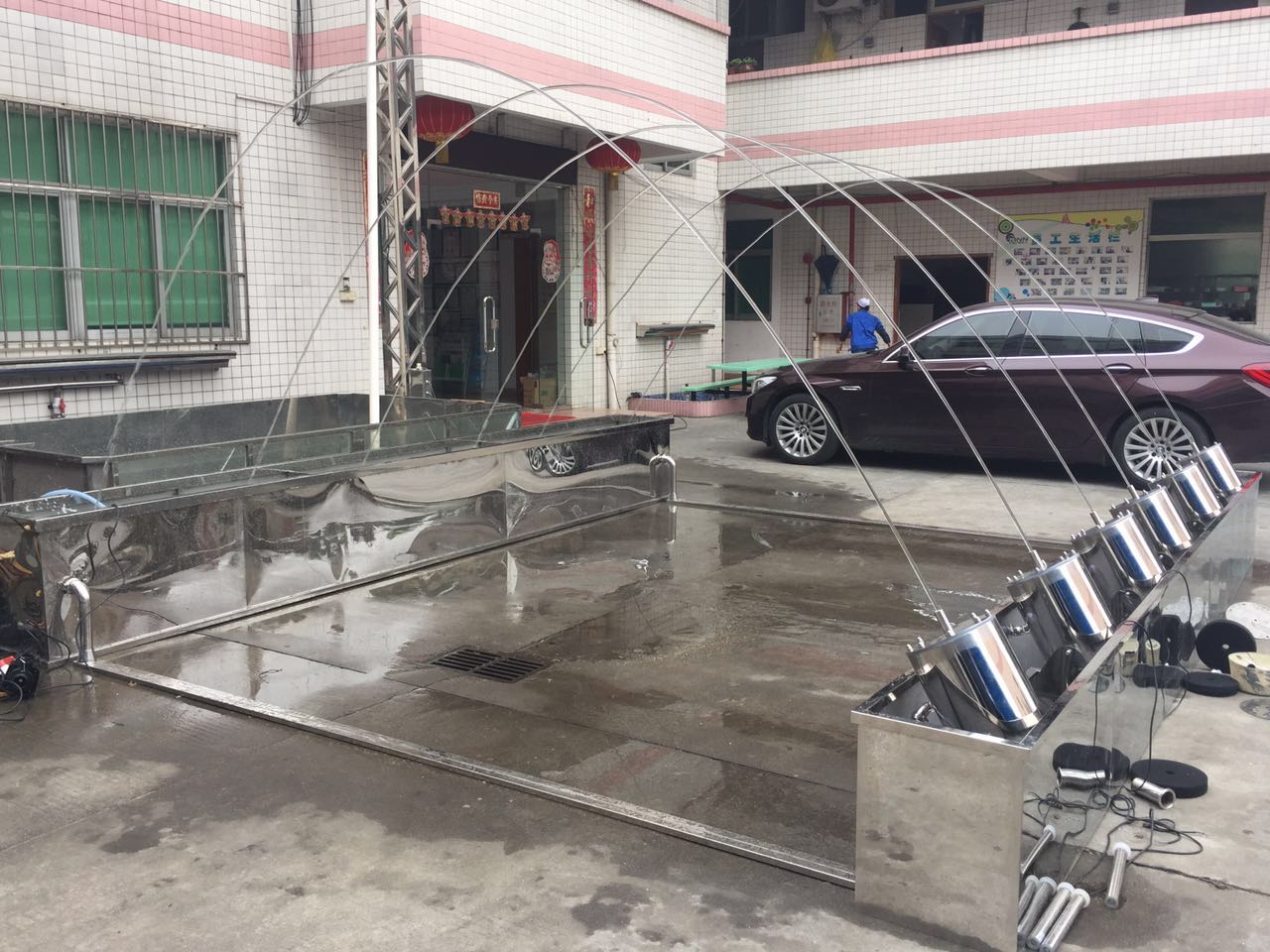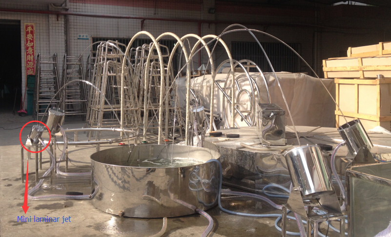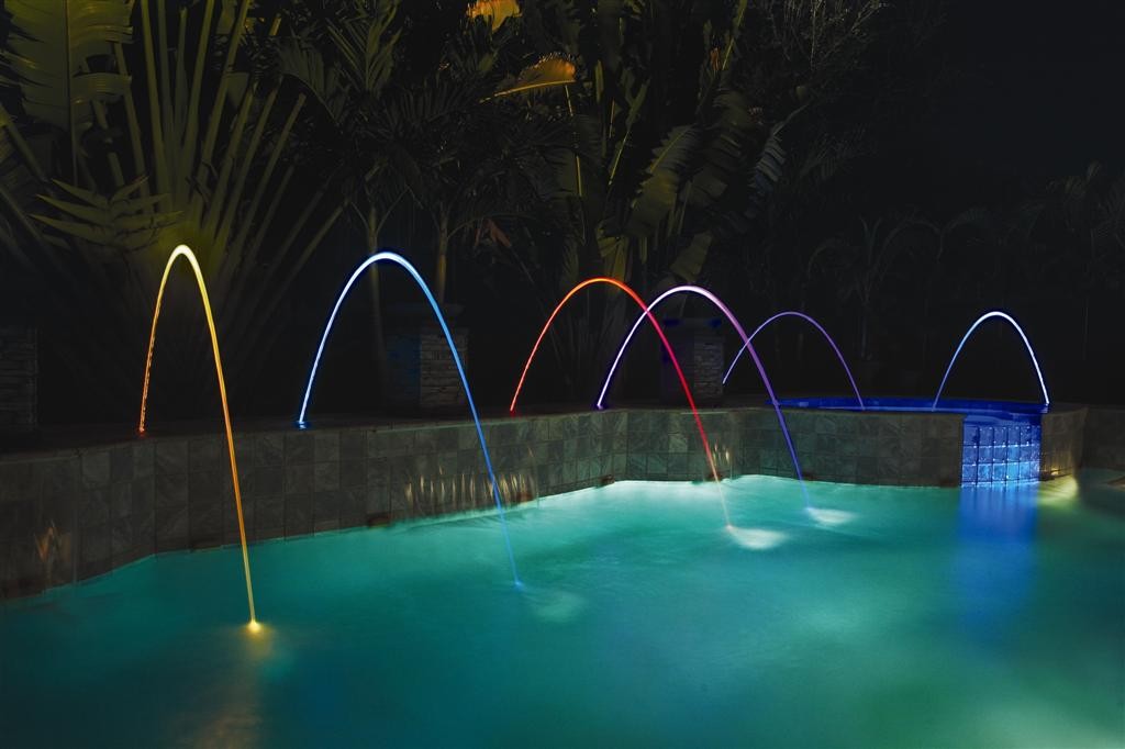 波光喷泉,又名光亮泉,波光喷泉在喷射时,水柱呈拱门状,整体光洁,水柱不溅不散,沿着设定的轨迹喷射,弧形波光水柱穿池而出,在空中挂起一道道幽雅的彩虹。大型波光喷泉跨度可达到8-10米,中小型波光喷泉跨度可根据需求设定,常用作喷泉景观构建组合,泳池水景陪衬组合等
