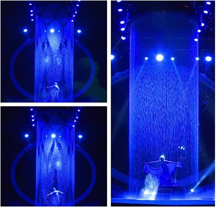 自由落体形成的图像、文字、数字变化万千,美轮美奂,可轮流播放或随时变换理想呈现的图形、文字、数字、营造出不同时季的节日氛围。数字水帘不仅给人声、形、色、三位一体的超自然享受,还可以净化环境(产生大量负离子,调节湿度,净化空气)可以充当大型宣传显示频幕,如高级饭店、宾馆、酒吧、迪吧、音乐厅、重要的商务办公大厦大堂,尤其适合大型的演出、时装发布、车展、广告宣传活动等。