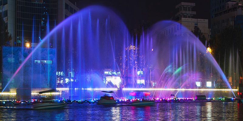 漂浮喷泉:采用漂浮设施将喷泉安装在湖面、河面等场所,如果在漂浮基础上增设升降功能,对喷泉的日常维护和冬季防冻非常有利。